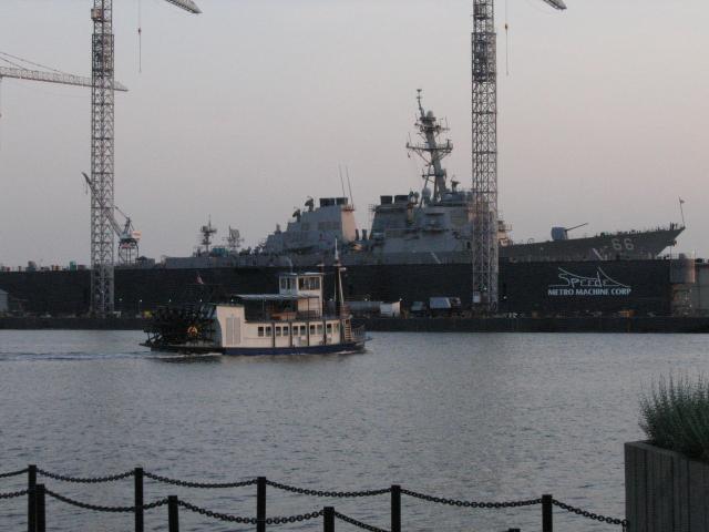 Old world meets new. Norfolk is home to the largest US Navy base in the world, but these paddleboat ferrys still run regularly.