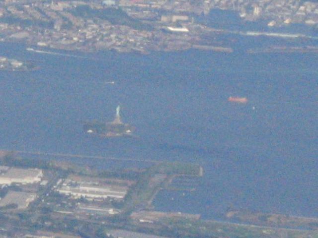 A high digital zoom shot of Lady Liberty.
